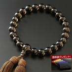 数珠 男性用 縞黒檀 (艶消) 茶水晶仕立 22玉 念珠袋付き