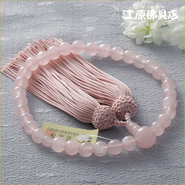 【10%OFF&P10倍★3/4-3/11】[メール便OK]ローズクォーツ(紅水晶)8ミリ共仕立 正絹頭付(1級品)≪紙箱入り≫灰桜色房【京念珠/女性】【念珠/数珠/女性】