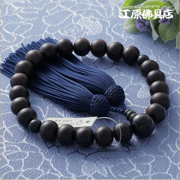 【10%OFF&P10倍★3/4-3/11】【京念珠/男性】縞黒檀(艶消し) 22珠青虎目石仕立 正絹頭付(極上品)≪桐箱入り≫鉄紺色房【念珠/数珠/男性】