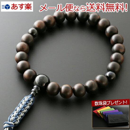 [12/1限定11%OFFクーポン]【ポイント10倍】【数珠袋付き】【メール便で送料無料 】数珠 念珠 『みやこ房 黒檀(素挽き)2天青虎目石仕立て(男性用) 【保証付き】』M-018略式 片手 一輪【最強翌日配送】(お葬式 葬儀 男性用数珠 お念珠 数珠入れ お数珠 葬式 葬儀)