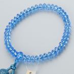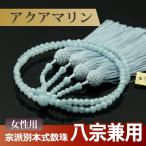 数珠 念珠 (八宗兼用) アクアマリン共仕立 正絹頭付房 八寸(桐箱付)(女性用/京念珠) 3月の誕生石
