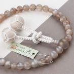 【現品お届け!】【一点モノ数珠 女性用 約8ミリ ベージュ ムーンストーン 正絹製・2色梵天房 数珠袋付き