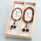 ≪ペア数珠≫数珠 男性用(18玉 老山白檀(インド産)正絹2色梵天房)・数珠 女性用(約7×8ミリ 老山白檀(インド産)正絹2色梵天房)ペアセット 数珠袋付き