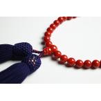 鑑別書付き 数珠 女性用 約7ミリ 赤珊瑚 正絹松風2色房 数珠袋付き