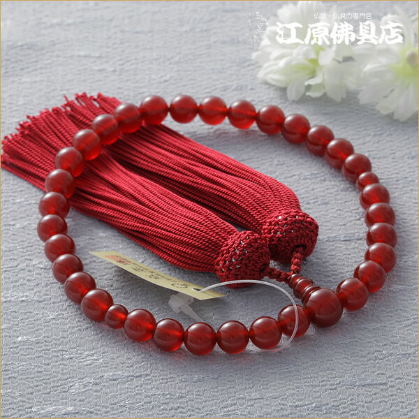 【10%OFF&P10倍★3/4-3/11】[メール便OK]瑪瑙8ミリ共仕立 正絹頭付(1級品)≪紙箱入り≫エンジ色房【京念珠/女性】【念珠/数珠/女性】