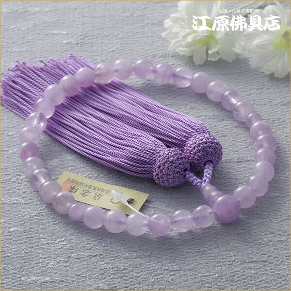 【10%OFF&P10倍★3/4-3/11】【京念珠/女性】本水晶8ミリ 紫水晶仕立 正絹松風房(極上品)≪桐箱入り≫紫色房【念珠/数珠/女性】
