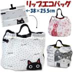 リップエコバッグ 軽量 レッド カーキ ブラックnoa family コンビニ お弁当 お買い物バッグ ショッピングバッグ 軽い 薄い 黒猫 手提げ 旅行 猫柄 猫雑貨 猫グッ