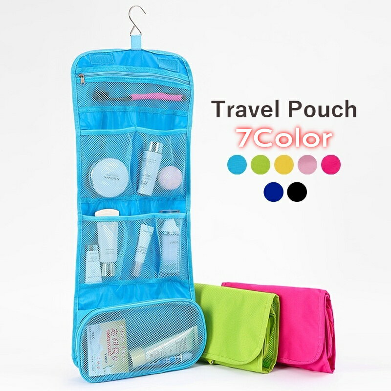 送料無料 トラベルポーチ 化粧ポーチ 収納ポーチ 吊り下げ 持ち運び 携帯用 コスメポーチ 小物入れ 壁掛け ハンギング フック付き 大容量 旅行用品