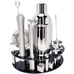 カクテルシェーカー11点セット回転スタンド付きステンレススチール製バーテンダーキットバーツールセット自宅バーパーティー旅行に