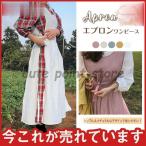 エプロン チェック エプロンワンピース レディース 幼稚園や保育士 可愛い カフェ ロング ギフト 家事 掃除 園芸活動 履きやすい