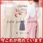 エプロン リネン 婦人 レディース 布素材 おしゃれ エプロンワンピース 可愛い 無地 保育士 ユニフォーム 制服 カフェ ケーキ屋さん