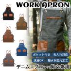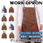 デニムエプロン カフェ 園芸活動 料理教室 陶芸教室 レディース 撥水 無地 定番 可愛い ポケット付き スタッフエプロン ワークエプロン