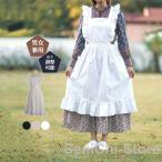 エプロン レディース フリル 布素材 メード ポケット付き シンプル 可愛い 無地 エプロンワンピース 花屋 ケーキ屋 カフェ