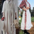 エプロン コットン 婦人 レディース 布素材 おしゃれ エプロンワンピース 可愛い 無地 保育士 ユニフォーム 制服 カフェ ケーキ屋さん