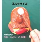 木魚セット 小さめタイプ 木魚、ふとん、バイ付き 3点セット 仏壇用 仏具 もくぎょ