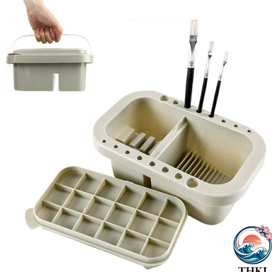 【全品2点で5%OFF】筆洗 筆洗い バケツ パレット 3in1 ブラシワッシャー 筆洗バケツ 筆置き付 持ち運び便利