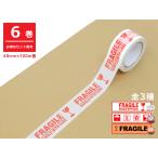 【お得な6巻セット】梱包用OPPテープ 48mm×100m巻 全3種 FRAGILE Caremark 割れ物注意 ガムテープ ケアシール 荷造りテープ 倉庫
