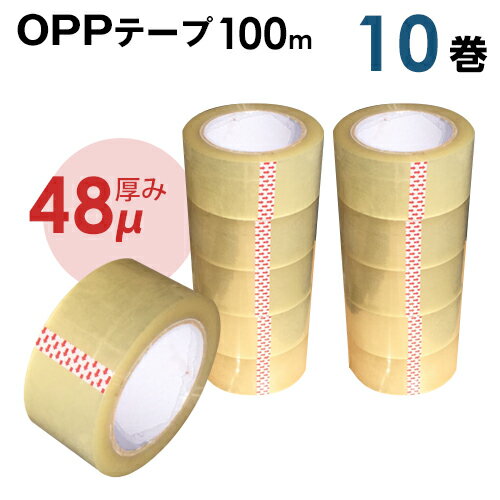 OPPテープ 48mm×100m 48um 10巻セット (フリマアプリや交換アプリでの梱包に最適!お引越しや模様替え、衣替えなど、梱包にちょうどいい容量の10巻セット) 透明テープ 梱包用 透明 48ミクロン まとめ買い 複数 購入 多量 業務用 個人 オーピーピーテープ 荷造り 引っ越し