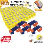 OPP テープ 梱包テープ 500個 梱包 資材 透明テープ 厚さ 50μ 48mm × 100m 1巻 クリア ビニール 業務用 テープカッター セット