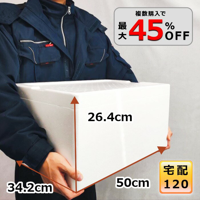 【5%OFF 12/1 23:59まで】発泡スチロール 箱 大型 120サイズ クーラーボックス 魚 容器 保冷箱 保冷 保温 釣り ギフト 贈答用 軽量 丈夫 BBQ お祭り レジャー キャンプ【幅34.2cm×奥50cm×高26.4cm】【F-13】