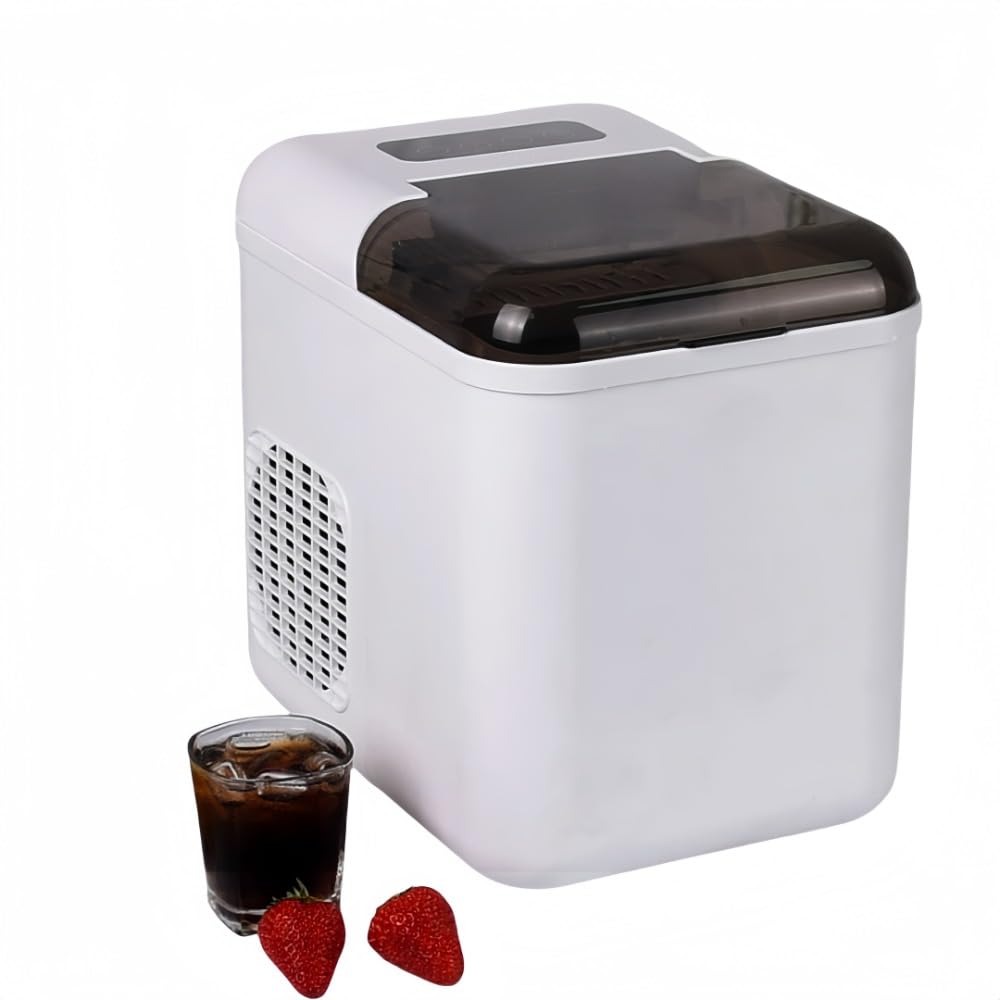製氷機 小型 自動アイスメーカーマシン 家庭用/業務用 卓上 コンパクト準備完了 ハンドル付き氷バスケット 取り扱い簡単 大容量水タンク 透明窓 小型 静音 寮、オフィス、キャンプ、車、多目的 (標準電源12V,ホワイト) [並行輸入品]
