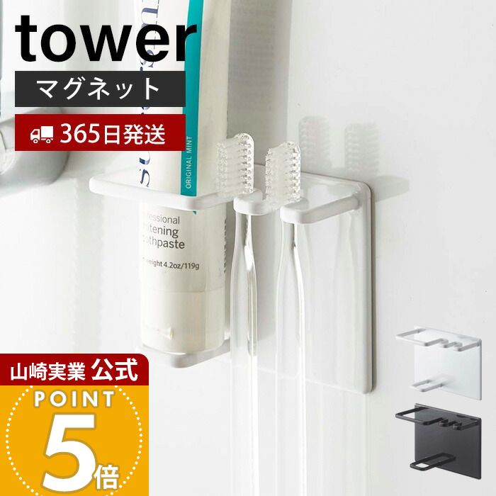 【365日出荷】山崎実業 マグネットバスルームチューブ&トゥースブラシホルダー タワー tower 公式 バスルーム 浴室 マグネット 収納 浮かせる収納 歯磨き粉 歯ブラシ 清潔 ホワイト ブラック 5510 5511