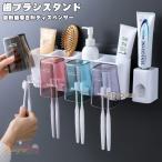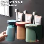 歯ブラシスタンド 歯磨きコップ ホルダー 洗面台収納 一台多役 歯磨き粉ホルダー バスルーム収納 自動歯磨き粉チューブ 壁掛け 歯ブラシホルダー 粘着式