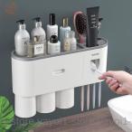 歯ブラシスタンド 歯ブラシホルダー 2.3.4個コップ付き 自動歯磨き粉チューブ歯ブラシ立て 洗面所 収納 壁掛け マグネット 電動歯ブラシ バスルーム収納