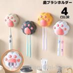 歯ブラシホルダー 壁掛け 粘着式 防塵カバー付き 吊り下げ収納 電動歯ブラシ 省スペース 穴あけ不要 洗面所 洗面台 ネコの肉球