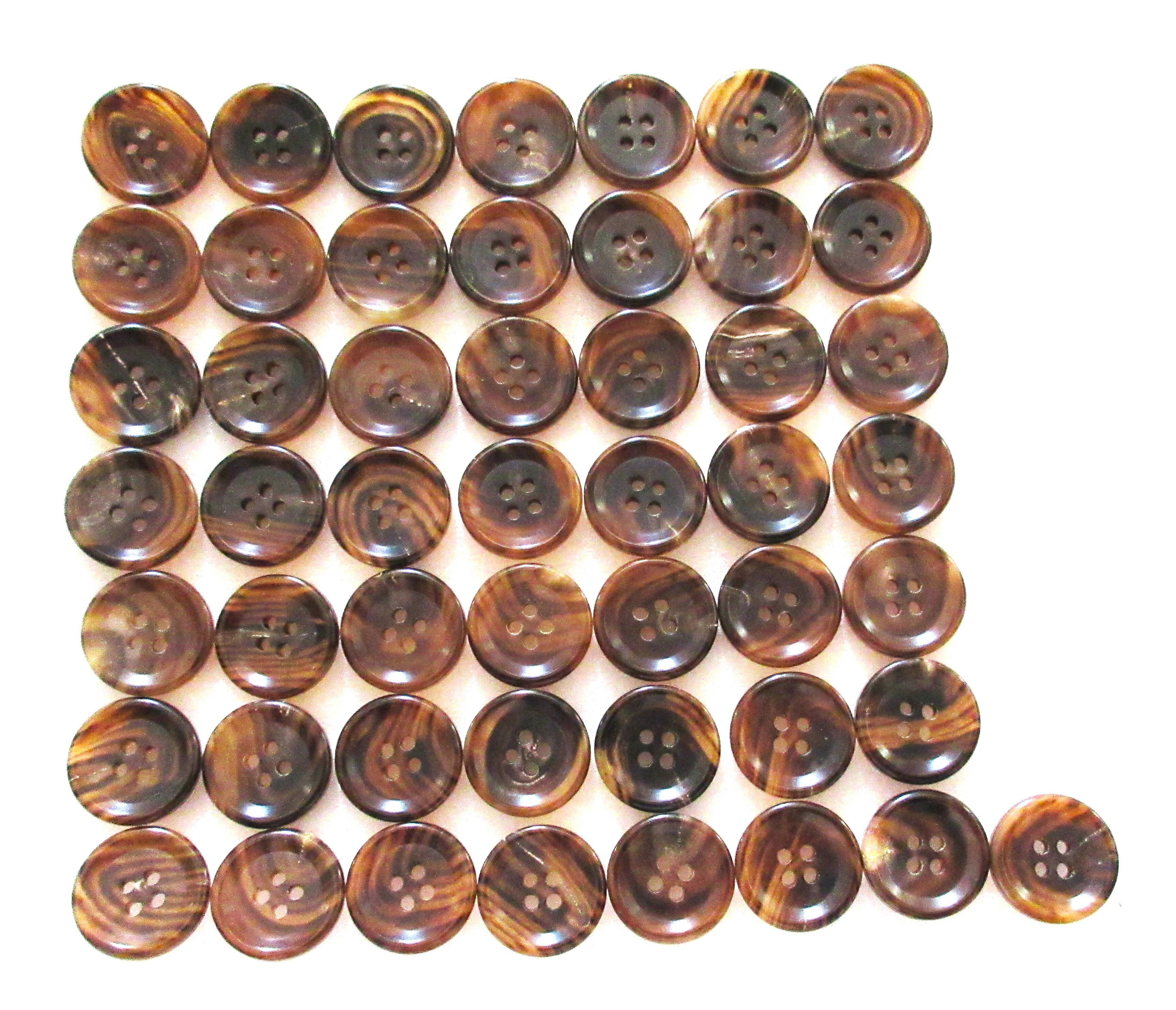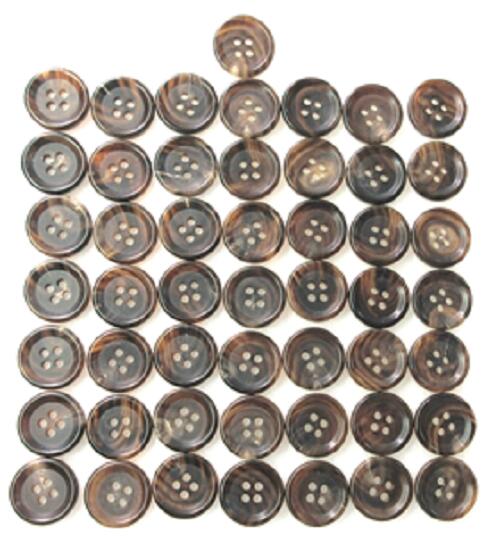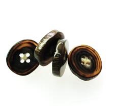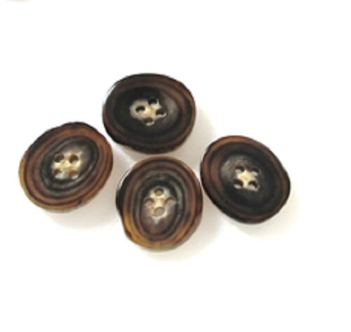 水牛ボタン・20mm、タライ型。50個の価格。業務用。茶の附(天然色)・四つ穴・本水牛。日本製。ゆうパケット便。