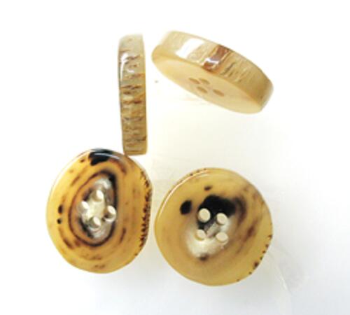 水牛ボタン・20mm、タライ型。50混の価格。業務用。薄々茶(天然色)・四つ穴・本水牛。日本製。ゆうパケット便。