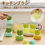 キッチンブラシ 食器洗い スポンジ 2個セット 取替ブラシ3個付き 鍋洗い 台所用 ソフト チキンブラシ キッチン 台所 フライパン洗い 洗濯ブラシ かわいい