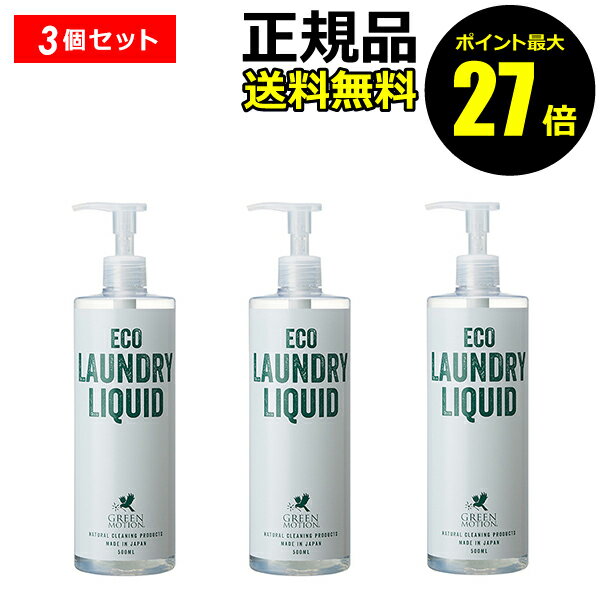 【ポイント最大27倍】グリーンモーション エコランドリー 500ml 3個セット 植物由来 洗濯洗剤 液体洗剤 おしゃれ着洗剤 中性 精油配合 エッセンシャルオイル配合 日本製 新生活 正規品 ギフト対応可