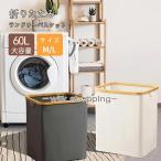 洗濯カゴ 洗濯かご 折り畳み式 ランドリーバスケット 60L ランドリーボックス 洗濯籠 洗濯物入れ 収納ボックス 収納バッグ 竹のハンドル付き