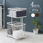 ランドリーワゴン+バスケット セット 2段 ランドリーラック ダブル ワイド キャスター付き 洗濯かご 洗濯カゴ 洗濯物入れ 洗濯物カゴ 脱衣かご 代引不可