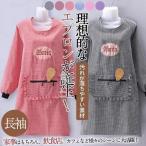 エプロン 割烹着 調理 長袖 うわっぱり 上っ張り 胸当て ロング 保育士 チェック柄 レディース 飲食店 作業用 キッチン 家事 料理 汚れ防止