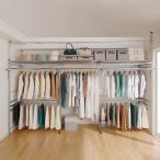 奥行79cm 上下カーテン付き突っ張り頑丈ハンガーラック ロータイプ・【ワイド】幅260-340cm対応 衣類収納 クローゼットハンガー カバー 632152