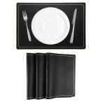 uxcell ダイニングテーブル用 フェイクレザープレイスクッション4枚セット 長方形テーブルクッションプレイスクッション (黒金色ライン)