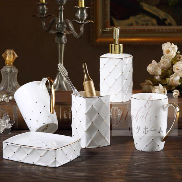 高級ソープディッシュ サニタリー 洗面用具5点セット歯ブラシスタンド バス用品