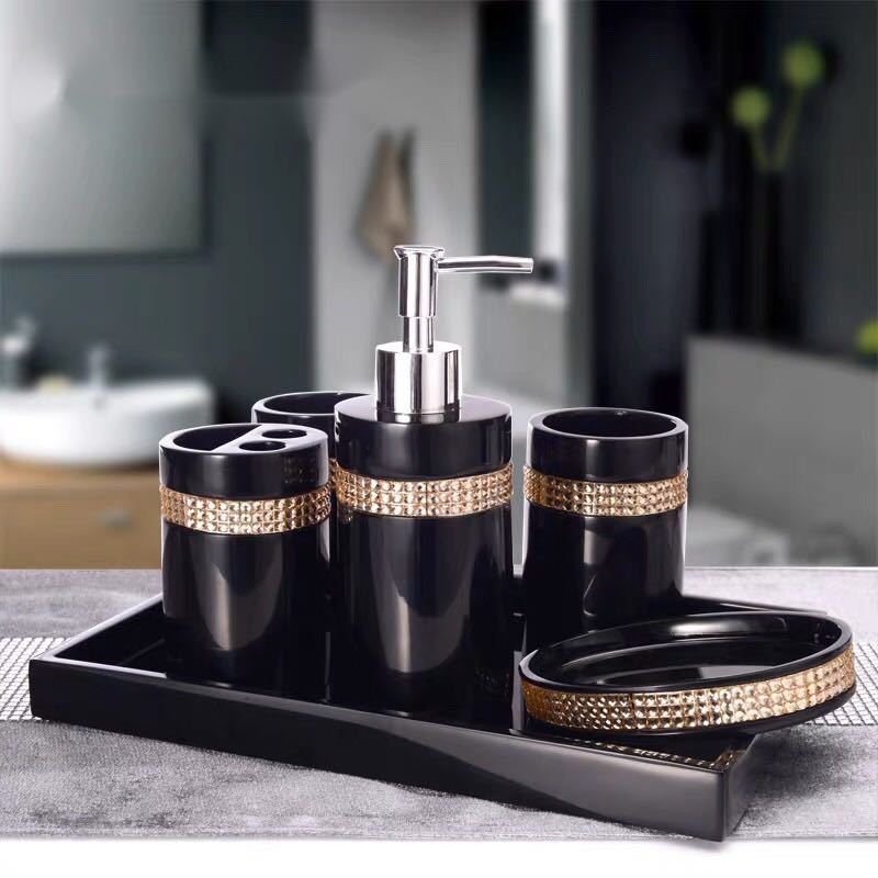 バスルームセット 5点セット ソープディスペンサー 歯ブラシスタンド 石鹸置き コップ 洗面用具