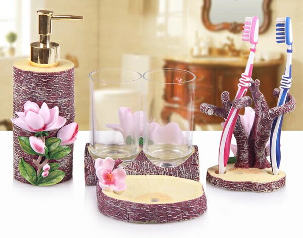 A007223高級ソープディッシュ サニタリー 洗面用具5点セット歯ブラシスタンド バス用品