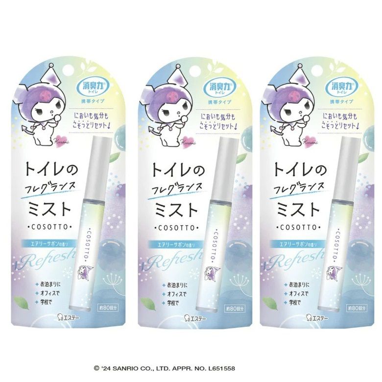 【SS期間10%OFF】トイレ 消臭 スプレー 携帯 消臭力 トイレ用 携帯タイプ エアリーサボンの香り 9mL 消臭ミスト スプレー 消臭剤 消臭 芳香剤 消臭スプレー コソット 携帯ミスト サンリオ クロミ マイメロ 【×3個セット】
