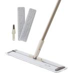 . フロアモップ フロアワイパー 水拭き 乾拭き フローリング 掃除 クロス2枚 取替用 スライド式 収納便利 MDM(ブラック, モップ)