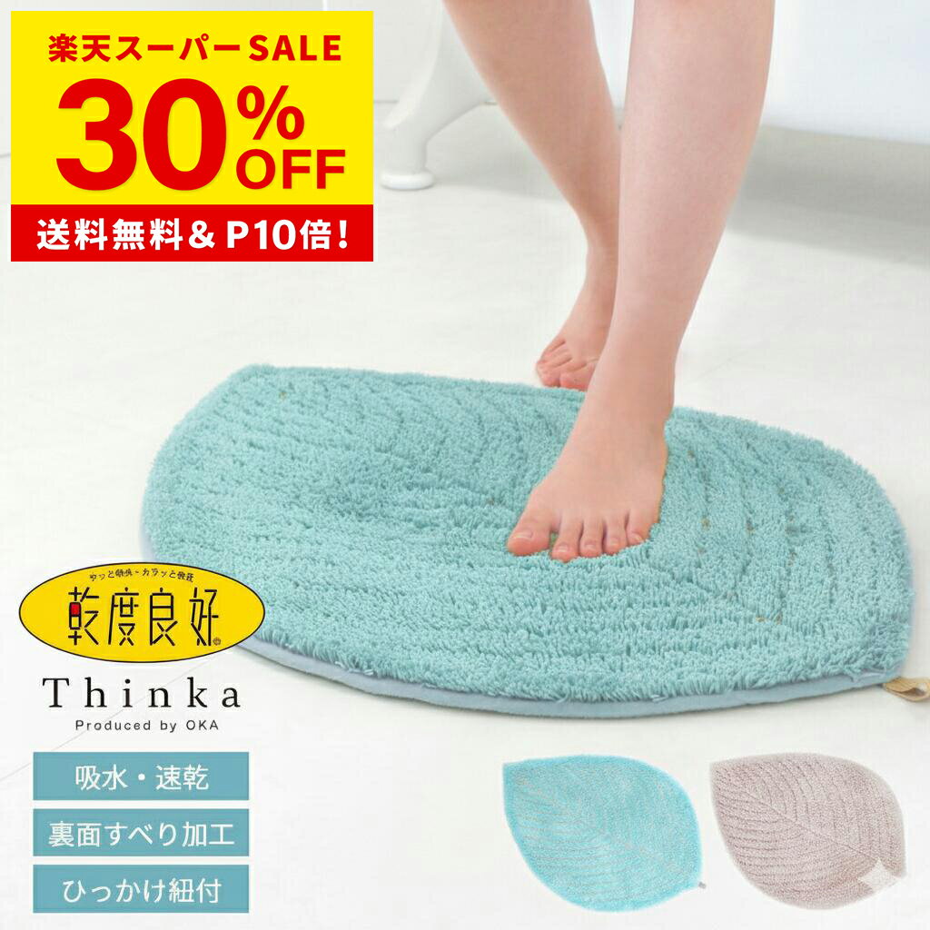【30%OFF★12/4 20時〜】Thinka 乾度良好 リーファ 約49×70cm ( バスマット 洗面マット トイレマット 玄関マット 足拭きマット おしゃれ 可愛い 吸水 速乾 乾きが早い インテリア 雑貨 勉強机 デスク 丸 円 葉っぱ 緑 風水 ボタニカル ギフト プレゼント )