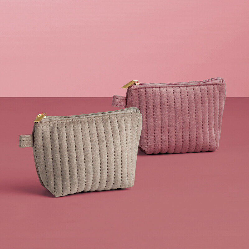 ヌベルース・キルティングポーチ 60個セット販売 バッグに入れてもかさばらないサイズ感と、生地のかわいらしさが魅力。シックなカラーもポイント