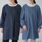 デニム生地のおしゃれな割烹着 無地 エプロン 割烹着 デニム お尻が隠れる 無地 ゆったり かっぽうぎ スモック 割ぽう着 かっぽう着 ンプル ロング ワンピース