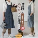 エプロン おしゃれ 大きいサイズ 保育士 綿100% メンズ デニム生地 デニム 肩掛け かぶるだけ カフェ風 無地 業務用 業務用エプロン ポケット付き 2色