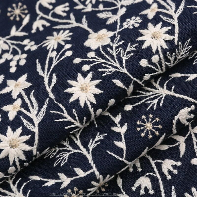 【時間限定10%OFFク一ポン】送料無料 125cm幅 90cm単位 刺繍生地 生地 布 布地 刺繍布 綿生地 花柄 紺色 デニム生地 ややストレッチ 伸縮性 楽天海外通販