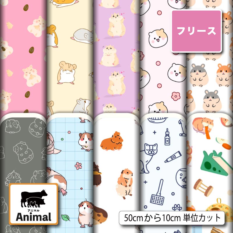 フリース 生地 布 アニマル 動物柄 かわいい 毛玉防止 アンチピリング 商用利用可 犬服 ひざ掛け スヌード アウター ハンドメイド 手作り 新柄 (animal_11)