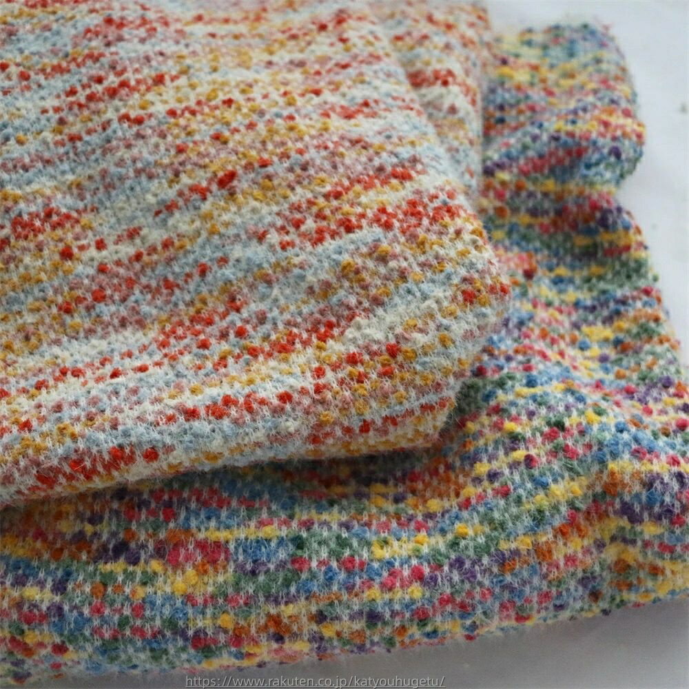 【時間限定10%OFFク一ポン】送料無料 145cm幅 90cm単位 生地 布 布地 きじ ぬの 手作り生地 裁縫 DIY用生地 手芸用 ハンドメイド素材 秋冬 カラフルビーズあめ風 編み込み風 ニットテクスチャー 温かフリース モコモコ風合い 毛糸ニット 編み生地 オレンジ ブルー 楽天海外通